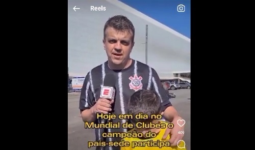 ...é preciso ser entrevistado pela ESPN. Foi o que fez o jornalista Rodrigo Relozi. Ele fez parte de uma caravana que foi de Campo Mourão a São Paulo no último fim de semana para ver Corinthians e América/MG pela Copa do Brasil. Ao chegar à Neo Química Arena acabou sendo entrevistado pela ESPN. Foi numa enquete sobre o Timão ter dois mundiais e uma só Libertadores. Relozi, claro, defendeu a tese e ainda provocou "um certo adversário"...