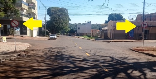 A nova sinalização de trânsito na região dos jardins Alvorada e Bandeirantes em Campo Mourão tem até cruzamento onde o motorista não pode virar nem à esquerda, nem à direita.