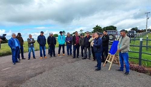 Aconteceu neste sábado a entrega oficial da pavimentação da estrada da comunidade rural Água da Binga, em Campo Mourão. Teve direito a descerrameto de placa e tudo. Um trecho de 2,2 km foi asfaltado pela Codusa. O trecho também vai receber sinalização vertical. O investimento da prefeitura foi de R$ 998 mil. A comunidade conta com cerca de 70 moradores.