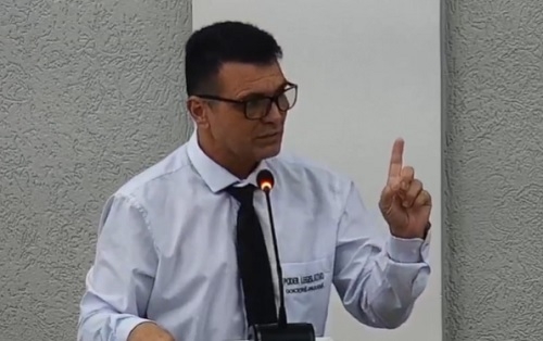 Professor Paraíba, vereador em Goioerê, lamentando que o município tenha recebido apenas R$ 870 mil em "emendas pix". Segundo ele, se o deputado Hermes Frangão tivesse sido reeleito, a cidade teria recebido pelo menos R$ 2 milhões; na sessão da Câmara desta segunda-feira.