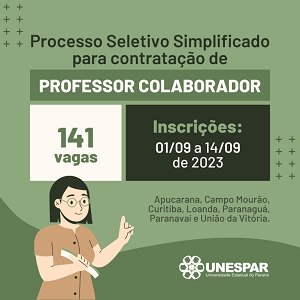 A Unespar vai abrir Processo Seletivo Simplificado para a contratação de professor temporário.