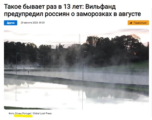 Olha essa: uma foto do Parque das Torres, em Campo Mourão, foi parar num site russo. A imagem é do jornalista Dirceu Portugal e foi publicada com o devido crédito. O texto, segundo o Google Tradutor, fala de geadas atípicias em agosto em regiões da Rússia.