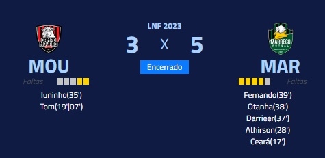 Campo Mourão perdeu neste domingo, em casa, para o Marreco (5 a 3) pela Liga Nacional de Futsal.