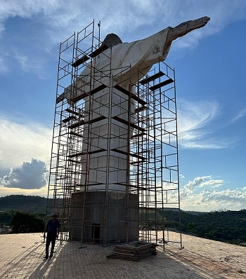 “Começamos a reforma e pintura da estátua do nosso Cristo Redentor. Vai ficar lindo”.
