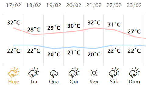A semana começa quente em Campo Mourão. Segundo o Simepar, a temperatura chega aos 32 graus nesta segunda-feira. Os termômetros voltam à casa dos 30 graus na quinta, sexta e sábado. A terça e quarta-feira terão temperaturas mais amenas, com máximas de 28 e 29 graus, respectivamente. Na quarta tem previsão de 23 mm de chuva.