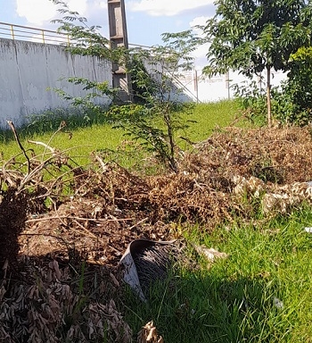 O gramado do lado de fora do estádio Roberto Brzezinski está sendo utilizado como depósito de lixo. Fora o mato alto em volta. Bem ao lado do Centro Dia do Idoso, mais conhecido como creche do idoso.