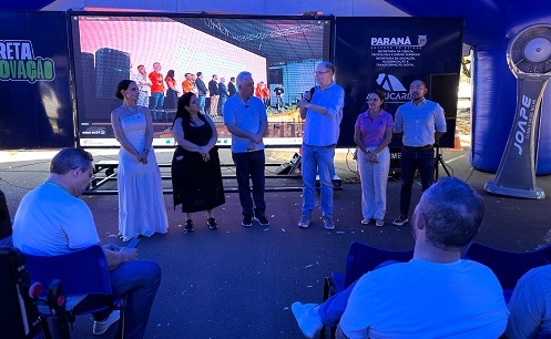 O secretário de Estado Alex Canziani (Inovação, Modernização e Transformação Digital) esteve em Campo Mourão no último sábado. Veio para o evento que marcou o encerramento das atividades da Carreta da Inovação na cidade. O prefeito Douglas Fabrício acompanhou. A carreta, com uma série de atividades, passou a semana em frente a Unespar.