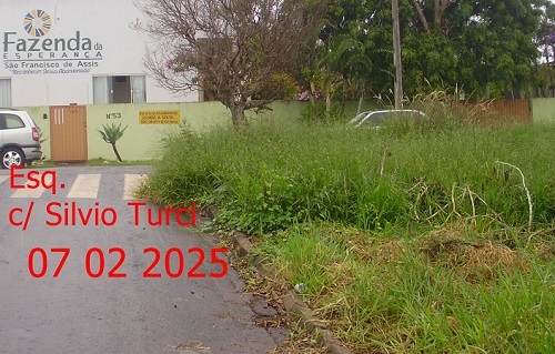 Rua Angelin, esquina com rua Silvio Turci. Quem a rua Silvio Turci mão vê nem a esquerda, nem direita. Na esquerda pilhas de tijolos e pela direita é o matagal.