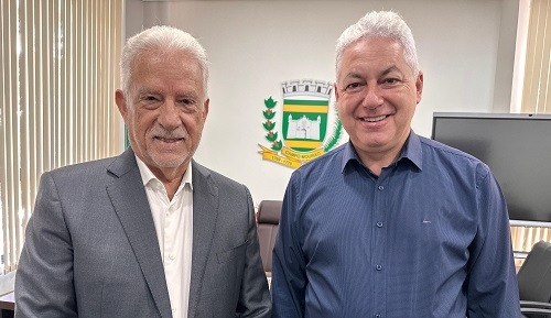 Rubens Bueno, presidente da Agepar e ex-prefeito de Campo Mourão, durante visita ao prefeito Douglas Fabrício; nesta sexta-feira.