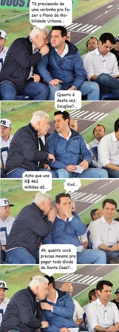 Olha aí a segunda versão da conversa do prefeito de Campo Mourão, Douglas Fabrício, com o governador Ratinho Jr na sexta-feira, durante a inauguração da revitalização do Aeroporto Municipal.