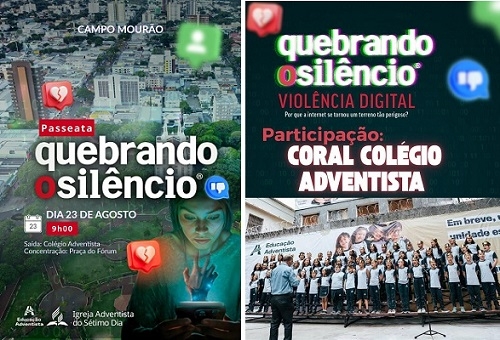 A Igreja Adventista do Sétimo Dia promove neste sábado (9h), em Campo Mourão, uma passeata para marcar a edição 2025 da campanha “Quebrando o Silêncio”. Neste ano, o tema da campanha, realizada em diversos países da América do Sul, é “Violência Digital – Por que a internet se tornou um terreno tão perigoso?” A concentração acontece no Colégio Adventista, com chegada na Praça do Fórum, onde haverá uma programação especial. A participação é aberta à comunidade.