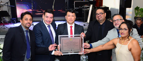 Engenheiro Beltrão – A Câmara de Vereadores entregou o título de Cidadão Honorário ao juiz de direito Silvio Hideki Yamaguchi. Entre os presentes, o deputado Luiz Nishimori e os prefeitos Junior Garbim (Engenheiro Beltrão), Leonardo Romero (Quinta do Sol) e Junior Molina (Fênix).