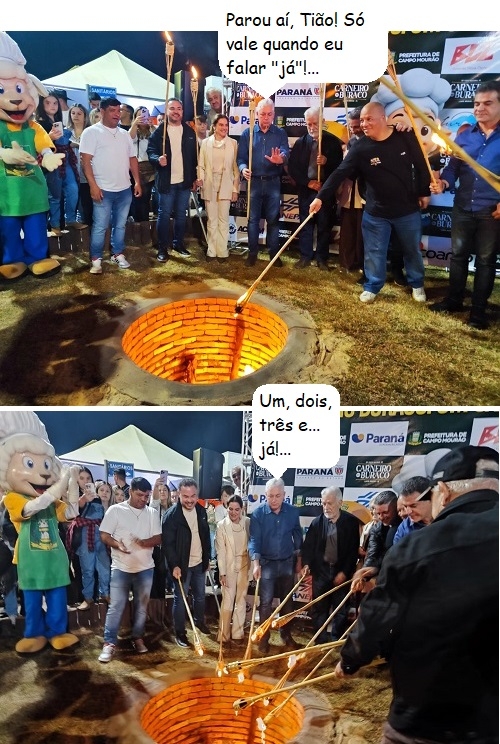 Os cliques são deste sábado à noite. Com a volta da Festa Nacional do Carneiro no Buraco ao Parque de Exposições de Campo Mourão, voltou também o tradicional acendimento do “buraco número 1”. Lá estavam o prefeito Douglas Fabrício, a vice Fátima Nunes, o ex-prefeito Rubens Bueno (atual presidente da Agepar), o deputado federal Beto Richa (ex-governador) e os vereadores Jadir Pepita, Escrivao Parma, Hélio HG, Márcio Berbet e Tião do Karatê.