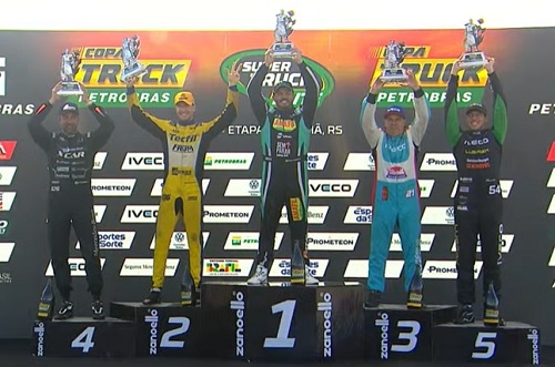 O piloto Pedro Perdoncini, de Campo Mourão, voltou ao alto do pódio pela Copa Truck. Foi neste domingo, na quarta etapa da temporada, no autódromo de Tarumã, em Viamão/RS. Ele foi o vencedor da corrida 2 da categoria Elite. Foi a terceira vitória do mourãoense na temporada. Ele já tinha vencido em Campo Grande/MS e São Paulo. A categoria também conta com outra piloto de Campo Mourão, Thaline Chicoski.