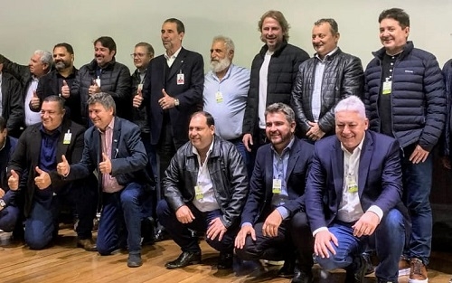 Parece pose de time de futebol, mas são prefeitos que estiveram esta semana em Foz do Iguaçu em busca de investimentos através de parceria com a Itaipu Binacional. Oclécio Meneses, de Farol, por exemplo, tratou da pavimentação da estrada da comunidade rural Água da Fartura. O diretor brasileiro da Itaipu, Enio Verri, e o deputado federal Zeca Dirceu estavam presentes.