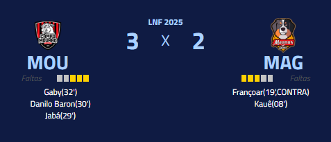 O próximo desafio de Campo Mourão pela LNF será domingo que vem, fora de casa, contra o Pato.