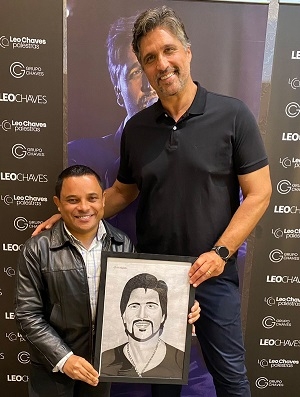 Uma palestra-show com o cantor Léo Chaves encerrou, nesta quarta-feira, o Acicam Conecta, que comemorou os 72 anos da Associação Comercial de Campo Mourão, certo? E não podia faltar a presença do “recepcionista oficial” da cidade. Magnum Alves fez a recepção ao cantor-palestrante com direito a presenteá-lo com um de seus desenhos.