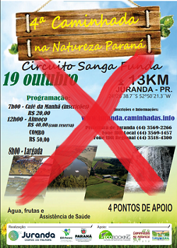 Foi cancelada a Caminhada Internacional na Natureza que seria realizada neste domingo em Juranda.