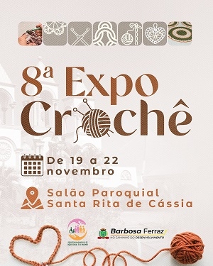 Barbosa Ferraz – A prefeitura confirmou a realização da 8ª Expo Crochê. Será de 19 a 22 de novembro. Haverá estandes de crochê e artesanato, praça de alimentação, oficinas e apresentações.