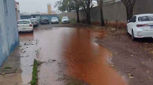 “Situação que funcionários e pacientes enfrentam todas as vezes que chove, no posto de saúde do Avelino Piacentini... Fora que cai água dentro do posto com goteira e rachaduras. Tem que nadar pra sair do estacionamento. É preciso reforma urgente”.