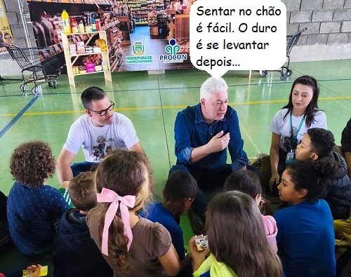 O clic é desta sexta-feira, na escola municipal Paulo 6º, onde o prefeito de Campo Mourão, Douglas Fabrício, acompanhou uma atividade da campanha "Proconzinho: aprendendo seus direitos". Se sentou no chão e tudo. O projeto, desenvolvido pelo Procon. é voltada a alunos do 1º ao 5º ano do ensino fundamental.
