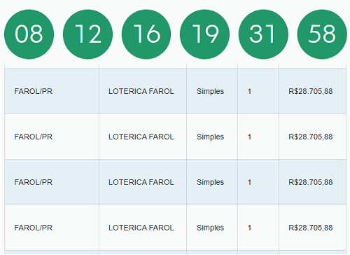 Uma aposta de Porto Alegre/RS acertou sozinha as seis dezenas da Mega Sena sorteadas neste sábado e faturou o prêmio de R$ 80,4 milhões. A quina teve 117 apostas ganhadoras e cada uma levou R$ 28,7 mil. Onze dessas quinas são do Paraná, sendo que quatro delas foram feitas na lotérica Farol, em Farol.