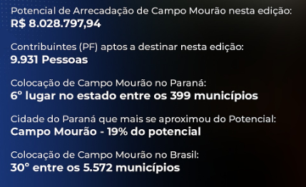 A campanha do Imposto de Renda 2024/2025 de Campo Mourão arrecadou R$ 2.014.830,91.