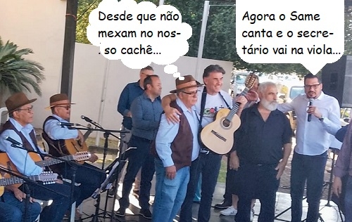 O clic é desta sexta-feira, em Campo Mourão, durante o lançamento o Território Turístico da Comcam. A orquestra Viola do Campo se apresentou por lá e o secretário de Estado Leonaldo Paranhos (Turismo) fez pose com a viola do violeiro França Nery. O prefeito de Iretama e presidente da Comcam, Same Saab, estava junto.