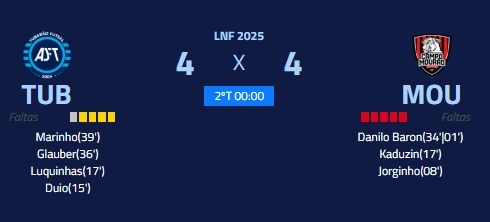 Campo Mourão empatou em 4 a 4 com o Tubarão/SC, neste sábado, pela Liga Nacional de Futsal.