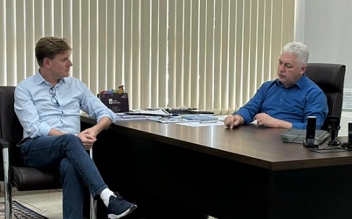 O prefeito Douglas Fabrício recebeu nesta sexta-feira a visita do deputado federal Nelsinho Padovani. Durante a reunião, foram discutidas demandas e projetos de interesse de Campo Mourão. O deputado se colocou à disposição para colaborar com as necessidades do município, reafirmando seu compromisso em buscar recursos e apoio junto à esfera federal.