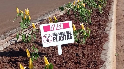 A prefeitura de Luiziana plantou novas flores no canteiro central da av, Independência. A novidade foi a colocação de placas com pedidos para não se mexer nas plantas. Pelas redes sociais, o município também pediu que não sejam colocados restos de comida no local, o que atrai animais. Outro pedido: quem flagrar coisa errada deve denunciar na Secretaria Municipal de Meio Ambiente.