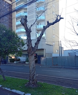 Árvore adulta seca. Não seria melhor prefeitura retirar antes que caia sobre um veículo e depois ter que indenizar? Av. Irmãos Pereira, 1571.