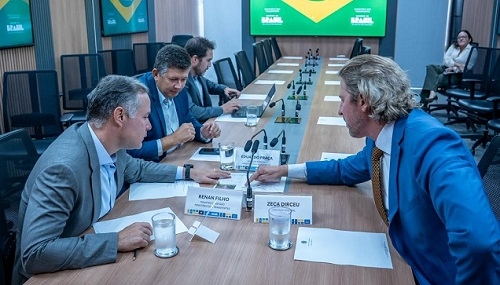 Renan Filho, ministro dos Transportes, sobre o asfaltamento da BR-158, entre Campo Mourão e Palmital, passando por Roncador, durante audiência com o deputado federal Zeca Dirceu, em Brasília.