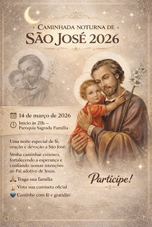Acontece no próximo dia 14, em Campo Mourão, a 4ª Caminhada Noturna de São José. A saída será às 21h na paróquia Sagrada Família, no Cohapar. A chegada está prevista para às 6h30 na Catedral São José. O percurso vai passar por outras nove paróquias, num total de 23,6 km.