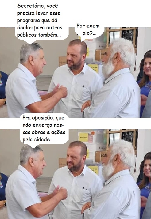 Os cliques são de quinta-feira, quando o secretário de Estado Rogério Carboni (Desenvolvimento Social e Família) esteve em Iretama. Os prefeitos Marcos Lopes (Peabiru) e Same Saab (anfitrião) aproveitaram para colocar a conversa em dia. A pasta de Carboni é a responsável pelo programa Bons Olhos, que distribui óculos para crianças em idade escolar...