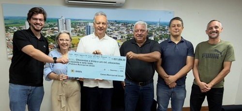 A Câmara de Ubiratã oficializou nesta segunda-feira a devolução para o executivo de R$ 831,8 mil de sobras do exercício. O “checão” simbólico foi levado pela presidente Luciane Munhos D’Alécio e por outros quatro vereadores ao prefeito Fábio D’Alécio. Ficou definido entre eles que o dinheiro será investido em três frentes prioritárias.