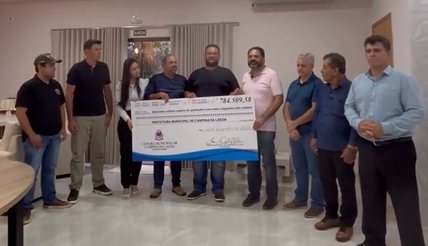 A entrega do cheque simbólico ao prefeito Padre Gianny ocorreu nesta segunda-feira.