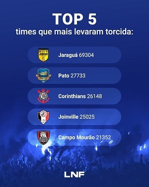 Campo Mourão foi o quinto time que mais levou torcida ao ginásio na última temporada da Liga Nacional de Futsal. Só ficou atrás do campeão Jaraguá, além do Pato, Corinthians e Joinville. O levantamento foi divulgado pela LNF. Em quadra, o ano foi o melhor da história do Carneitão, que chegou às semifinais da Liga e às finais do Paranaense da Série Ouro.