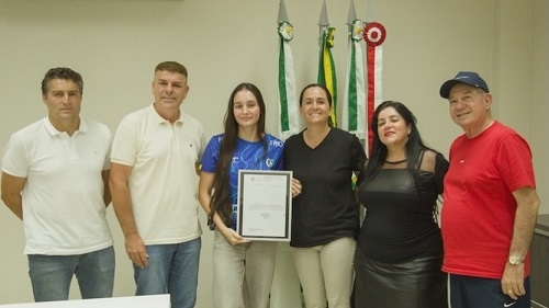 Que recesso, que nada! A Câmara de Campo Mourão entregou nesta quinta-feira o “Voto de Louvor” para a atleta Jisseli Isadora Monteiro da Silva. Ela começou aos 10 anos nos projetos sociais da cidade, com a técnica Marlene Reis. Hoje veste a camisa do EC Pinheiros, de São Paulo, e da Seleção Brasileira de handebol. Entre os títulos, o de bicampeã brasileira.