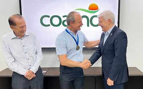 O presidente executivo da Coamo, Airton Galinari, recebeu nesta quinta-feira a medalha de Mérito em Gestão, comemorativa aos 60 anos de regulamentação da profissão de Administração. A entrega foi feita pelo presidente do Conselho Regional de Administração do Paraná (CRA-PR), Gilmar Silva de Andrade. O presidente do Conselho de Administração da Coamo, José Aroldo Gallassini, também participou.