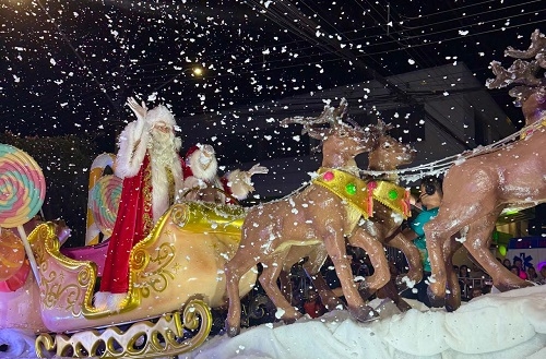 Av. Irmãos Pereira lotada na noite deste domingo para acompanhar o Cortejo Natalino. O desfile fez parte da programação do projeto Atividades Culturais Campo Mourão Cidade Natal e contou com mais de 100 alas temáticas, cerca de mil artistas e voluntários e 20 carros alegóricos. Entre os presentes, o prefeito Douglas Fabrício, a vice-prefeita Fátima Nunes e o secretário de Estado da Agricultura, Márcio Nunes.