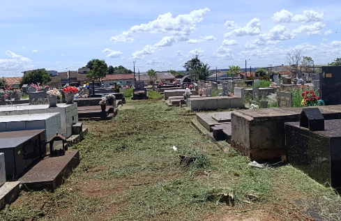 O mato do Cemitério Municipal de Campo Mourão começou a ser roçado.