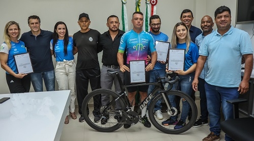 Teve mais entrega de “votos de louvor”, nesta quinta-feira, na Câmara de Campo Mourão. Agora foi para os ciclistas Maique Lourenço da Silva e Humberto Ferraz Affonso Filho medalhistas nos Jogos Abertos do Paraná, na categoria ciclismo de velocidade olímpica. A homenagem foi iniciativa do vereador Subtenente Macedo e contou com a presença de outros três vereadores.