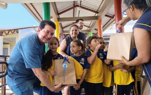 Farol – Os alunos da rede municipal receberam, quarta-feira, kits de materiais escolares. O prefeito Oclecio Meneses participou da entrega. Também será entregues uniformes de verão e inverno.