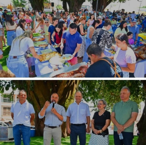 Aconteceu neste domingo, em Ubiratã, a quinta edição do Festival de Sabores da Comcam. Mais uma vez foi embaixo da seringueira na praça da prefeitura. O prato? O porco no rolete, de Toledo. Entre os presentes, o prefeito Pedro Coelho (Goioerê) e o deputado federal Ricardo Barros, além do prefeito anfitrião, Fábio D’Alécio, é claro. O festival serve uma vez por mês um prato típico diferente.