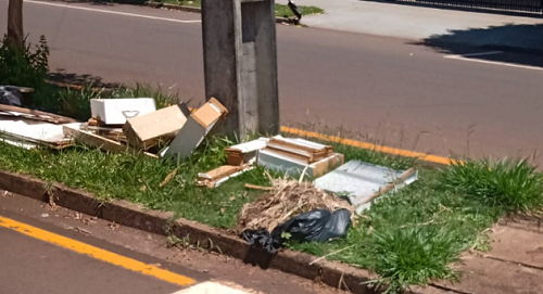 Como deixar a cidade feia. Restos de móveis deixados em canteiro da av. Comendador Norberto Marcondes.