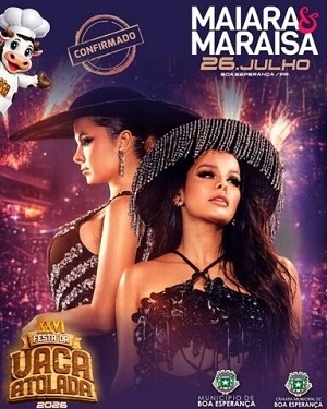 Boa Esperança – O prefeito Joel Buscariol anunciou pelas redes sociais o show principal da 26ª Festa da Vaca Atolada, no dia 26 de julho. Será a dupla Maiara e Maraísa.