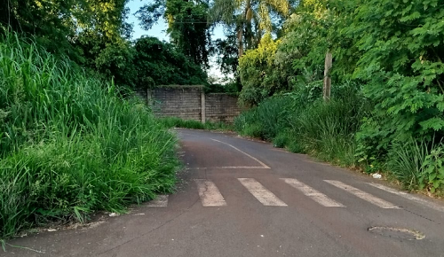 Situação do mato, já invadindo a via, no final da Rua dos Araçás com a rua dos Ipê Roxo, em Campo Mourão.