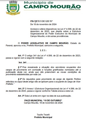 Um projeto protocolado na Câmara acaba com a exigência de curso superior para o cargo de gerente na prefeitura de Campo Mourão.