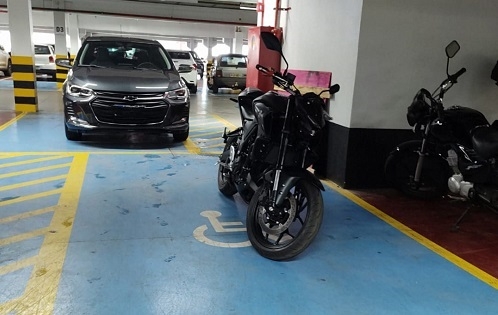 Moto em vaga de pessoa com deficiência física? Foi em supermercado de Campo Mourão.